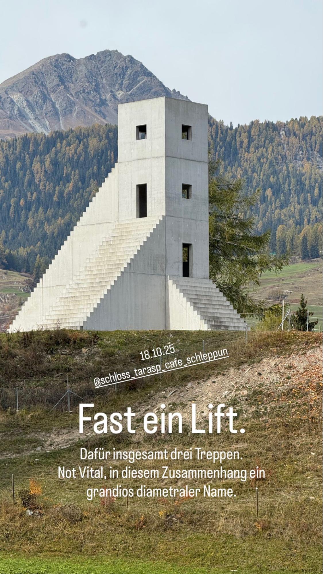Die ZEIT erwies sich für die Liftbesuche je nach Sichtweise entweder als keine geeignete Kategorie, oder als allgegenwärtig. Von Glasliften einmal abgesehen, könnte es in Liften stets jederzeit sein. Es gibt kein Vorher, kein Nachher, nur ein permanentes Jetzt.[11] Es war für mich bei den Liftbesuchen wiederholt eine Herausforderung, dieses «Jetzt» nur annähernd einzufangen. Rasch tendierte ich dazu, bereits Vorwissen abzurufen, oder zu einem späteren Zeitpunkt Recherchefunde über den jeweiligen Ort und Lift in die Kurznotizen zu verpacken.