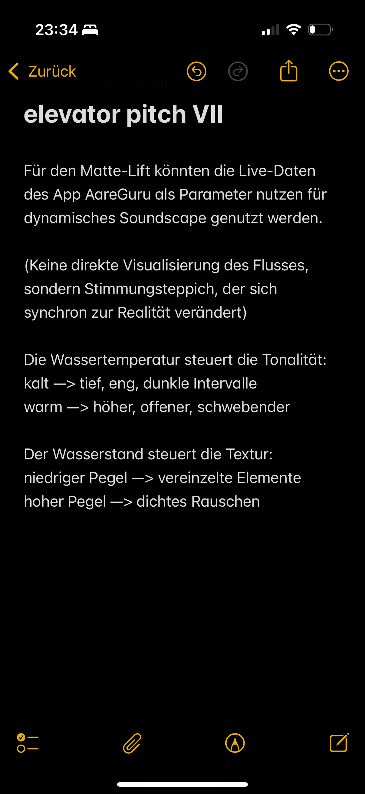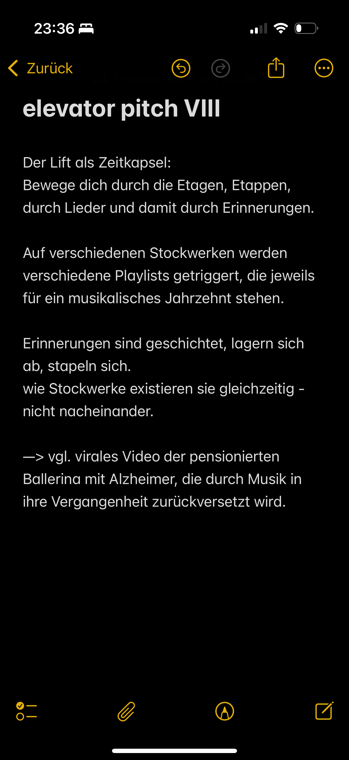 - Ideenskizze möglicher Lift-Interventionen (als elevator pitches im Notizen App)